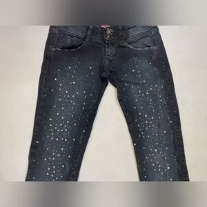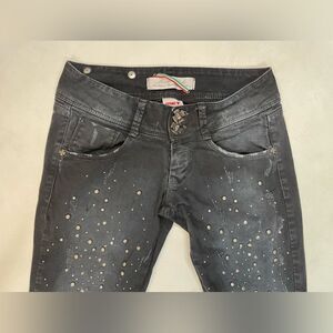 Met Skinny Studded denim Jeans Women Size 27 Black Distressed Skull Button
