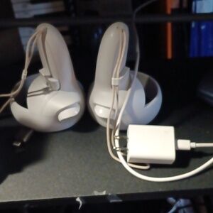 Comes with both controllers, original charger with the block, glasses adapter lens, Original box without cover