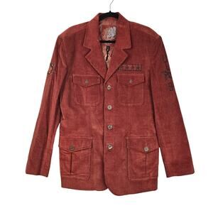 Metafuori Jacket Mens Large Rust Corduroy Military Utility Patch Embroidered NEW