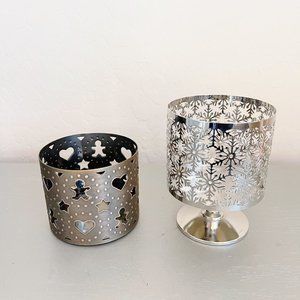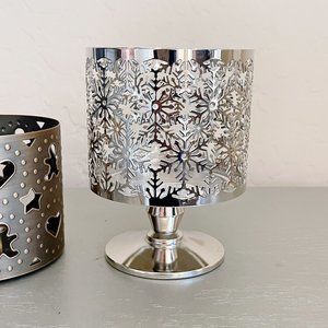 Metal 3 Wick Candle Holders Winter Snowflake Christmas Bath & Body Works Set 2