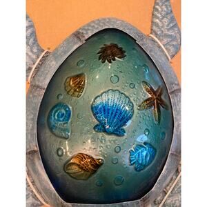 Metal And Glass Sea Turtle Wall Art or Light Fixture Cover, Beach House Decor
