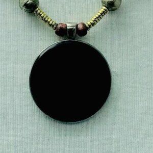 Metal And Wooden Beaded Chain Pendant Necklace, Handmade Light Weight Pendant