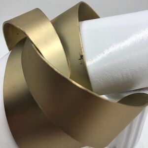 Metal Art Women's Gold Tone Braided Cuff Statement Bracelet Fashion Costume Jewelry. Bracelet is pre-owned. Please see all photos for visible condition. No original box. Brand/age/type of metal unknown. Appears to be a painted gold. There is a minor blemish (scuff) see photo. This is a lovely unique looking bracelet! Props not included.