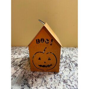 Metal ‘BOO!’ Pumpkin Lantern Candle Holder Rustic Halloween Table Décor