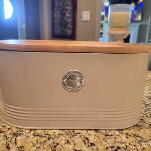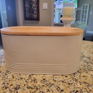 Like new metal bread box with bamboo lid.