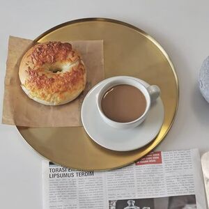Simple Circle Gold Tray: It's simple and elegant, super cute, has mostly served its purpose-very simple and not at all ornate. It is convenient to holding your candles coffee and food on it.