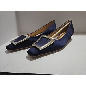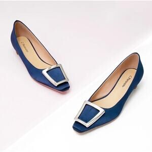 Metal Buckle Satin Low Heel (Lucia) C.Paravano Blue size women's 8