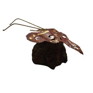 Metal Butterfly Sculpture Lava Rock Home Decor Art Vintage Mid Century Figurine