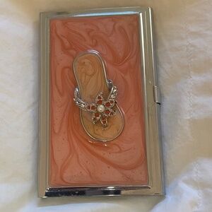 Features a an adorable Flip-Flop with Flowerl Detail on Cover. Card Case opens up to a mirror!