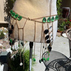 Gold chain skirt with multicolor gemstones. It's one size with adjustable chains. Condition is like new. Only tried on.