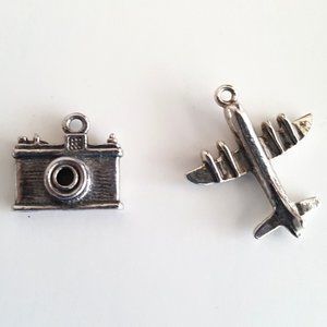 Pre-owned, Small Metal Charms - 1 airplane, 1 camera. See Photos for measurements.