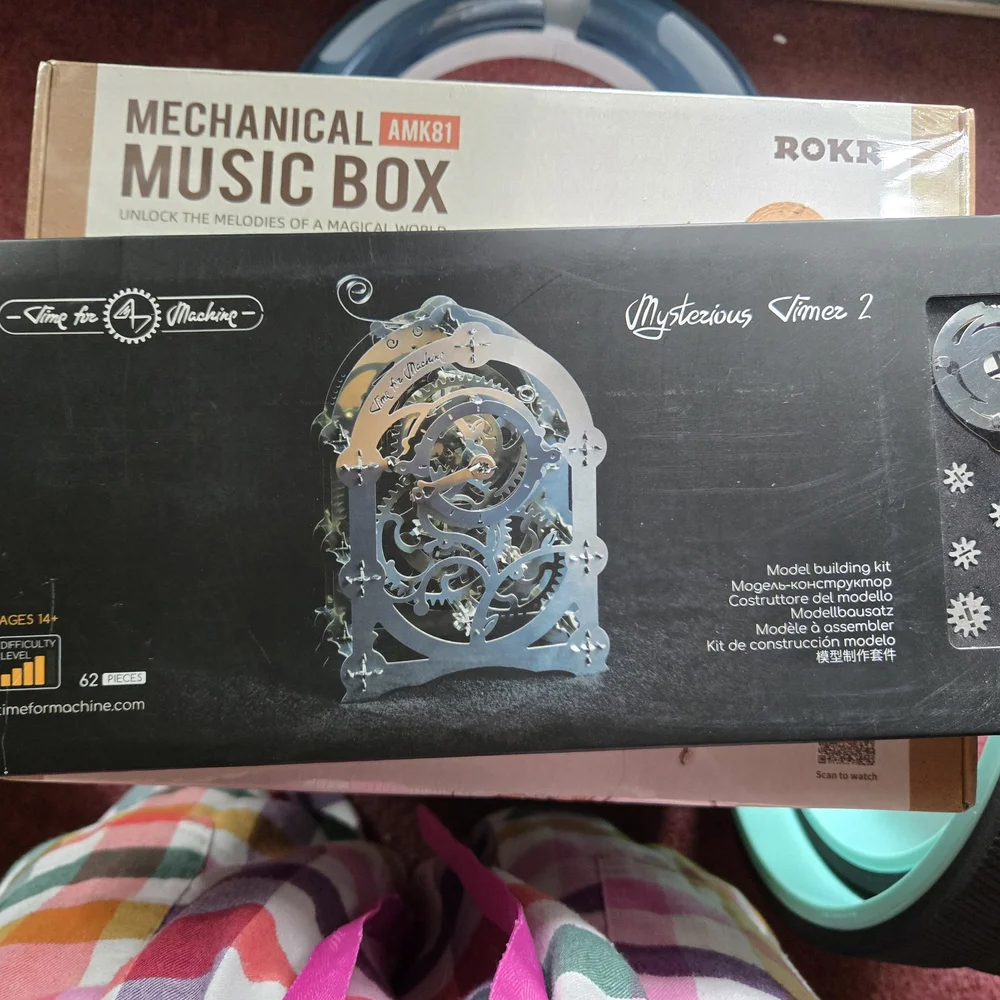 Metal clock kit with intricate design. Perfect for model building enthusiasts.