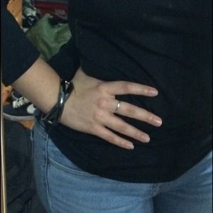 Metal bracelet. Looks like a dark silver. Can be worn casually or for evening wear.