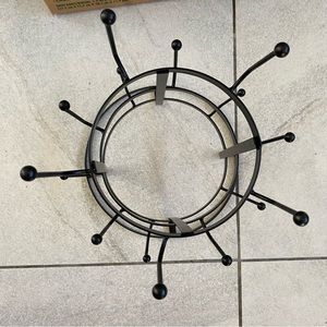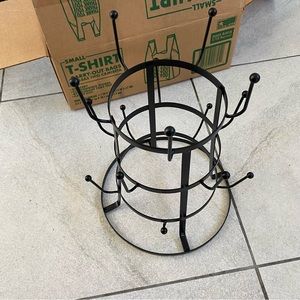 3 Tier Black Metal Drying Rack Stand holds 15. Good condition. Sits flat. 9" in diameter and 13 1/4" tall.