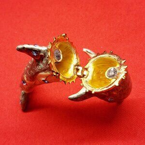 Metal Enamel Dolphin Trinket Box Hinged Rhinestone Accents