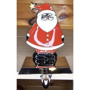 Metal Enamel SANTA CLAUS Christmas STOCKING HANGER Mantel Holder Hook Holiday