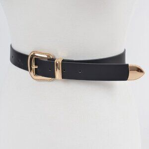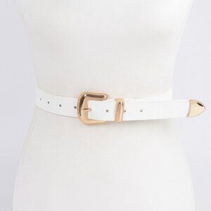 Step up your style game with the Metal Faux Leather Belt, an essential accessory that combines timeless charm with modern sophistication. Featuring a sleek gold buckle and classic faux leather finish, this belt is perfect for cinching your favorite dresses or adding polish to your workwear.