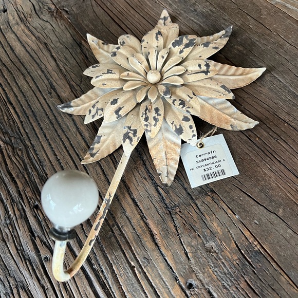 Brand new. Never used. Vintage shabby style floral wall hook with ceramic ball hook.