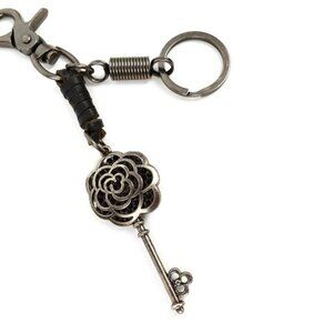 Genuine Leather and Metal Flower Skeleton Key Fancy Keychain