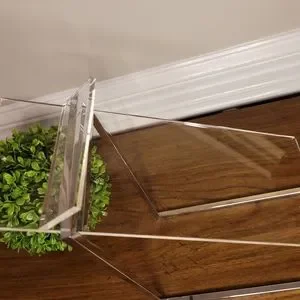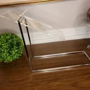 Polished chrome 3/8" square frame metal shoe riser with clear 4" wide x 10" long acrylic top with heel stop