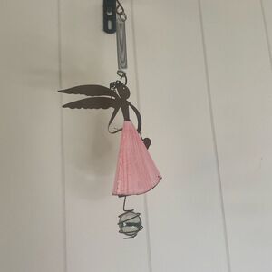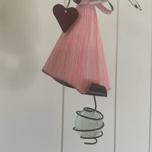 Metal Hanging Angel Figure Pink Dress Wings Heart Friendship Gift 10.5" Long