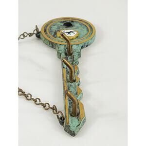 Metal Key Holder Keychain Hooks 5 1/4" Wall Mounted Green Patina Berlin Vintage