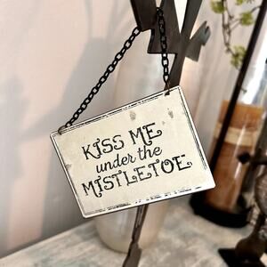 Metal "Kiss me under the Mistletoe" Christmas Ornament with Chain