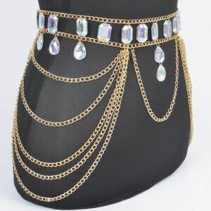 Make a bold entrance with the Metal Layered Chain Belt with Acrylic Stone. This statement piece features stacked iron chains with a single acrylic stone centerpiece for added drama. It’s the perfect accessory to define your waist and elevate minimal outfits. The sturdy design ensures it stays in place while making a visual impact. Strong, sleek, and effortlessly edgy.