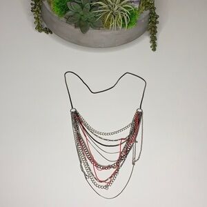 Metal Layered Silver 11 Chain metal Rock Necklace hot pink artisan made