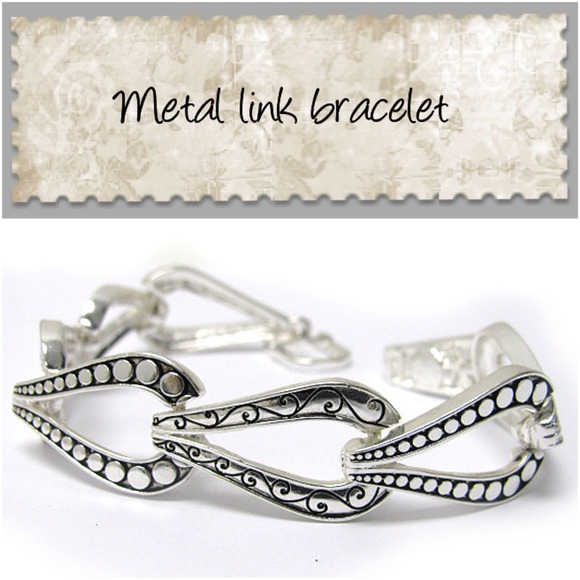 Textured metal link magnetic clasp closure bracelet. Silver tone. Approx. 8" long.