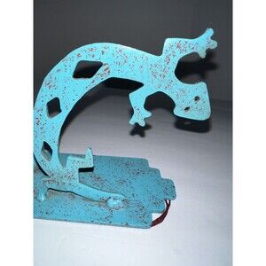 Metal Man Turquoise Metal Art Lizard Candle Holder Tribal Art Sculpture Vintage