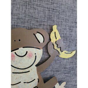 Metal Monkey With Bananas Wall/Door Mount Two Hook Rack 12x11 Inches Hats
