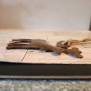 Metal Moose Ornament Brass-colored Jute Hanger Puffy 4.25 Inches