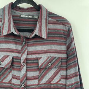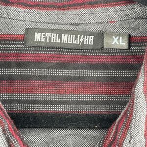 Metal Mulisha Button-Up Red Black Gray Knitted Stripes Long Sleeve Shirt XL