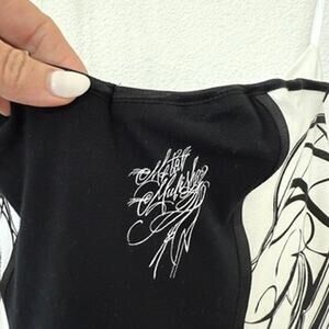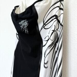 Metal Mulisha Slip Dress Graphic Black White Cotton Spandex Gothic Mini L