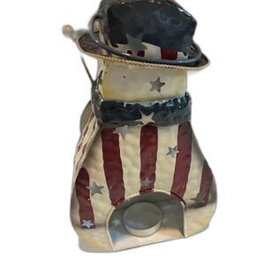 Metal Patriotic Snowman Votive Candleholder Christmas 4th of July Decor USA