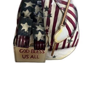 This Metal Patriotic Snowman Votive Candleholder is a festive and decorative piece perfect for Christmas and 4th of July celebrations. Made of metal and featuring red, white, and blue colors, this traditional style candle holder showcases a snowman character and is suitable for any room in the house. With dimensions of 4.5 inches in length and 9 inches in height, this candle holder is a great addition to your holiday decor and can hold a votive candle for a warm and cozy ambiance. Made by Home Interiors, this patriotic snowman candle holder is a charming and patriotic touch to your home.