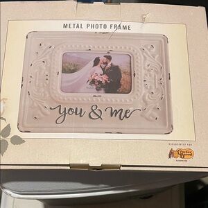 NEW, Elegant metal photo frame with 'You & Me' design. Can hang or stand. Perfect for cherished memories. From Cracker Barrel