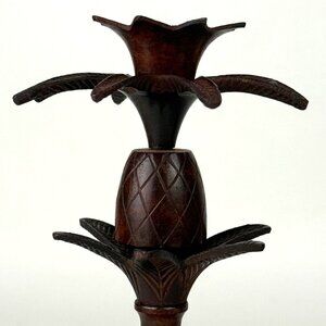 Enhance your decor with this elegant set of two brown metal pineapple candle stick holders, crafted in India. Perfect for adding a touch of exotic charm to any room.