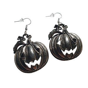 These Metal Pumpkin Jack O Lantern Vintage Earrings are a striking blend of style and substance. Crafted from metal, they showcase a heavy, vintage style, perfect for women seeking unique costume jewelry. Silver-gray in color, they add a touch of Gothic charm to any outfit.