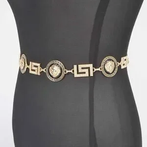 * Introducing the "Metal Rhinestone Chain Belt" – a stunning accessory that combines the allure of a gold chain with the sophistication of a medallion. Elevate your outfit with this exquisite piece from H&D Accessories, designed to make a statement wherever you go.