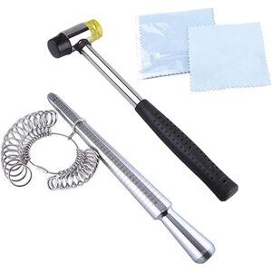 🧿Package included: 1 * ring mandrel; 1 * ring sizer; 1* rubber jewelers hammer; 2 * polishing cloths. Ring sizer measuring tools