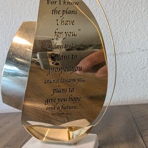 Metal Sailboat Stone Marble Base Paperweight With Scripture Jeremiah 29:11
