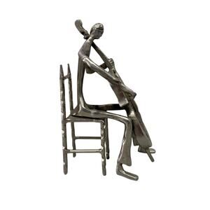 Metal Sculpture Musician 9” Cellist Soloist Metal Art Deco Abstract Gifting