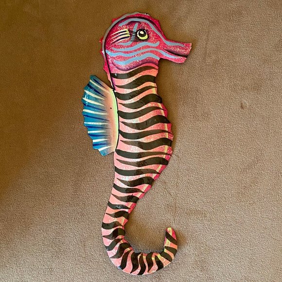 Hand painted metal seahorse wall hanging from the Caribbean