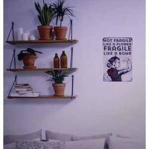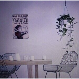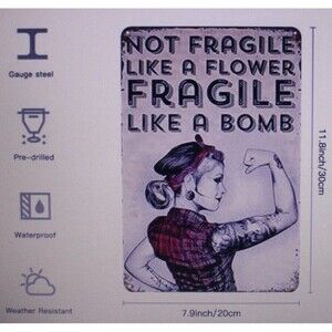 Humorous metal sign with the words: "Not Fragile Like A Flower...Fragile Like A Bomb". Approx. 8" X 12". Great gift. For indoor or outdoor. She shed. New in package.