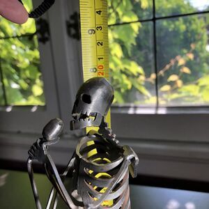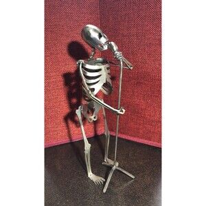 This unique metal sculpture depicts a skeleton figure of a singer, with intricate details that make it a perfect handmade gift for a vocalist band member. The artist, Kihl, created this piece using metalwork production techniques in 2014, and it stands at a small size of 8 inches in height. The sculpture is a great addition to any art collection and is perfect for display in any music-themed room. The singer's skeleton figure is beautifully crafted, and the vocalist subject is sure to impress anyone who sees it. This sculpture is a perfect way to show your love for music and your favorite artist.