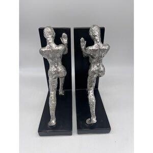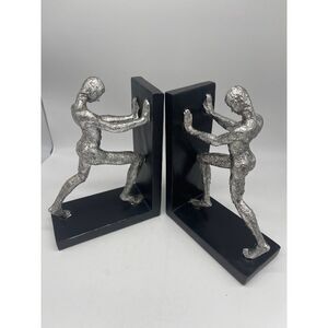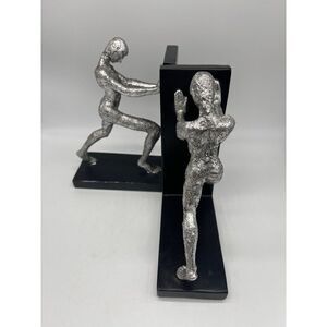 Metal Sliver Men Pushing Sculpture Balck / Silver Bookends