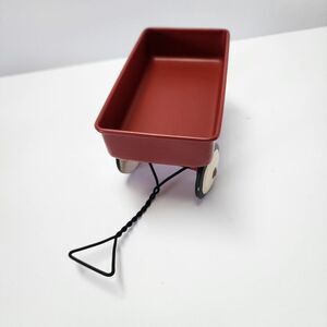 Lil Red Wagon, all metal for use for decorative purposes only, front wheels switch direction and all tires roll. Wagon is 5.5" long not including handle and 2.75" across and 3" tall not including handle.