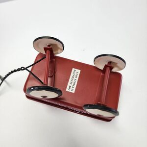 Lil Red Wagon, all metal for use for decorative purposes only, front wheels switch direction and all tires roll. Wagon is 5.5" long not including handle and 2.75" across and 3" tall not including handle.